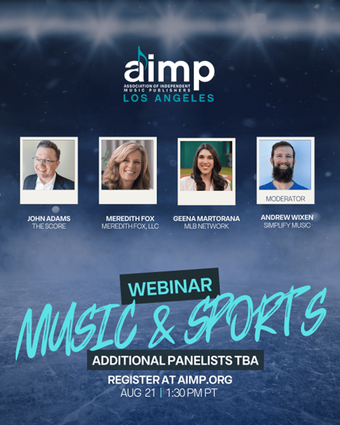 Music plays an undeniable role in sports–from TV game broadcasts to stadium soundtracks and event promos. Yet, licensing for these environments is often overlooked or misunderstood. AIMP LA’s webinar will clarify the complex web of synchronization agreements, public performance licenses, and PRO considerations–equipping creators, publishers, and managers to maximize opportunities in the sports arena.