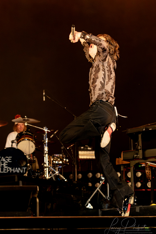 Under the Arizona evening sky at Tempe Beach Park, Cage the Elephant delivered the kind of unpredictable, high-voltage performance that sets them apart in today’s music scene. With Matt Shultz’s wild, magnetic stage presence leading the charge, the band’s 6:35 p.m. set on the Home Plate Stage blended garage-rock grit, alternative hooks, and pure showmanship into something that felt alive and impossible to look away from.